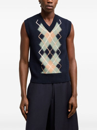 argyle wool-cashmere blend sleevless jumper