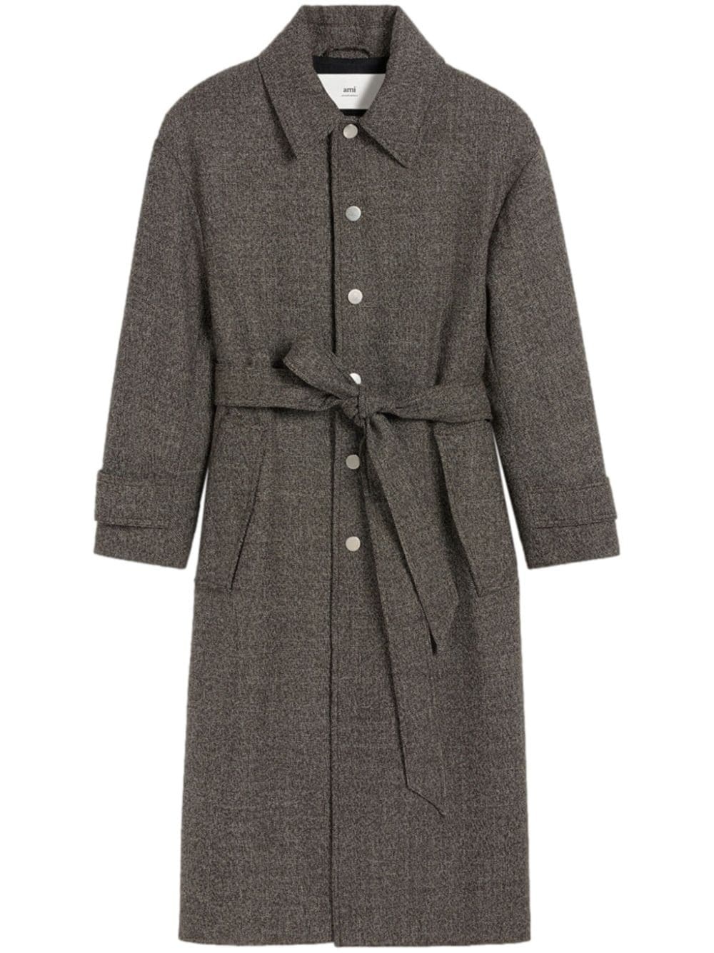 belted single-breasted coat Highlights - Grey - Cotton-wool blend - Belted waist - Long sleeves - Front button fastening - Two front patch pockets - Buttoned central rear vent Imported Composition Virgin Wool 56%, Cotton 44%