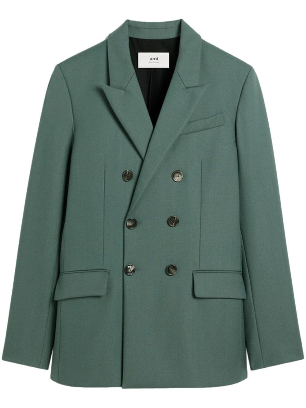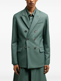bouble-breasted blazer Highlights - Green - Wool - Peak lapels - Chest welt pocket - Two front flap pockets - Double-breasted button fastening - Long sleeves - Buttoned cuffs - English rear vents Imported Composition Wool 100%