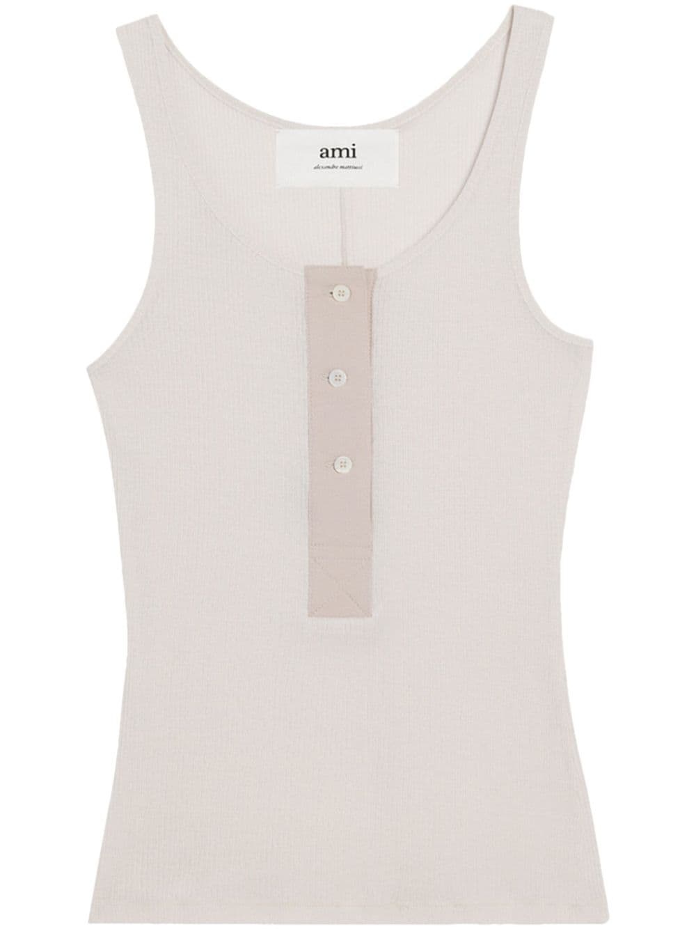 button-front cotton-rib tank top Highlights - Chalk white - Cotton - Ribbed knit - Short front button fastening - Sleeveless - Straight hem Imported Composition Cotton 100% SIZE & FIT Measurement BUST 27.55 in(70 cm) LENGTH 21.25 in(54 cm)