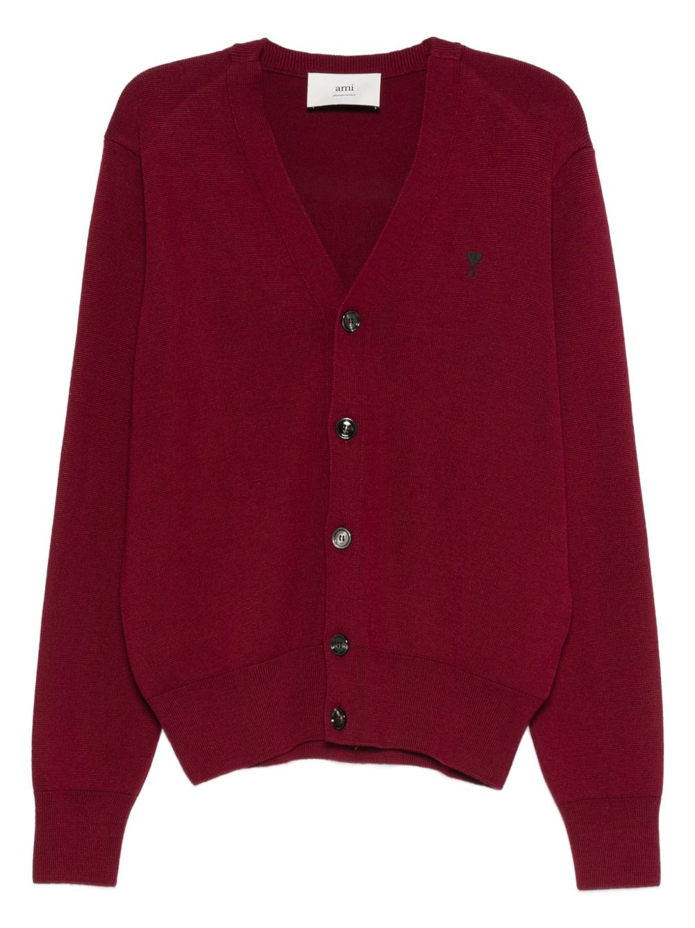 button-front logo-embroidery cardigan Highlights - Burgundy - V-neck - Button fastening - Long sleeves - Ribbed cuffs - Embroidered logo Imported Composition Merino 100% SIZE & FIT Model measurements Height 6 ft 2 in(1.87 m) Bust/Chest 36.41 in(92.5 cm) Hips 37 in(94 cm) Waist 29.52 in(75 cm) Washing instructions Read Manufacturer Guidelines