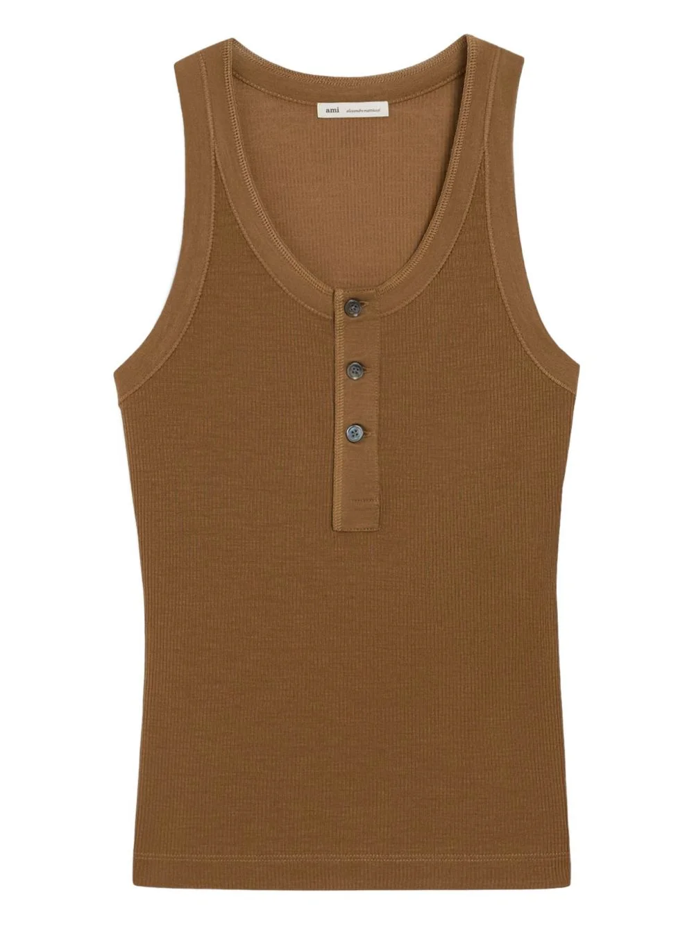 BROWN JERSEY TANKTOP WITH BUTTONED PLACKET