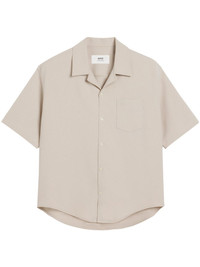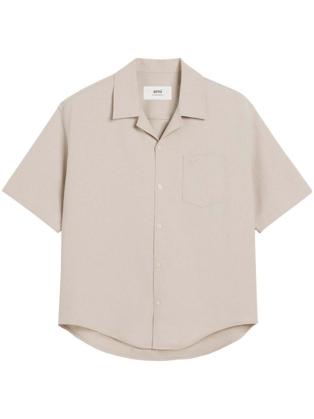 camp-collar shirt Highlights - Beige - Front button fastening - Chest patch pocket - Signature ami de coeur monogram motif - Short sleeves Imported Composition Cotton 100% Washing instructions Read Manufacturer Guidelines