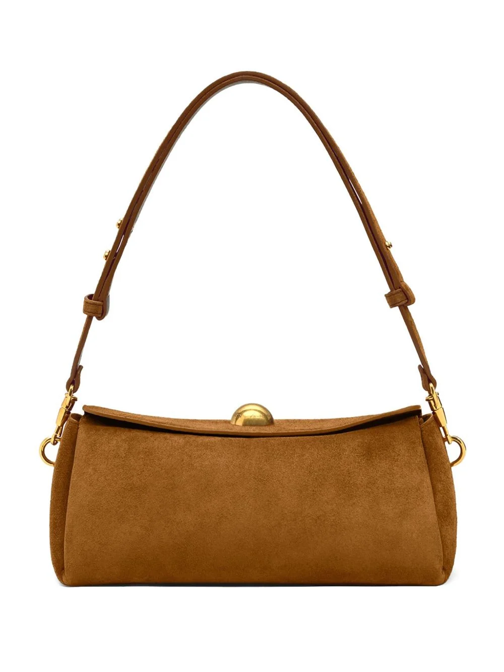 Carrousel suede bag Highlights - Brown - Stud embellishment - Adjustable strap - Magnetic flap closure Imported Composition Outer: Calf Suede 100% Lining: CALFSKIN 100% SIZE & FIT Measurement DEPTH 4.13 in(10.5 cm) HEIGHT 4.72 in(12 cm) WIDTH 10.23 in(26 cm)