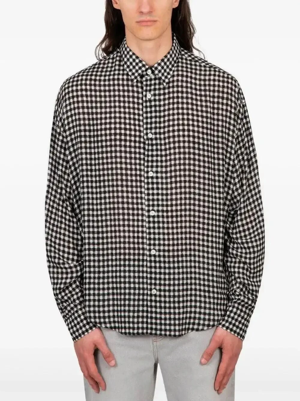 check-pattern shirt Highlights - Black/white - Check pattern - Classic collar - Long sleeves - Buttoned cuffs - Signature ami de coeur monogram motif - Curved hem - When buying this unisex item, keep in mind that it is graded in standard men's sizing. Made in France Composition Viscose 100% Washing instructions Read Manufacturer Guidelines