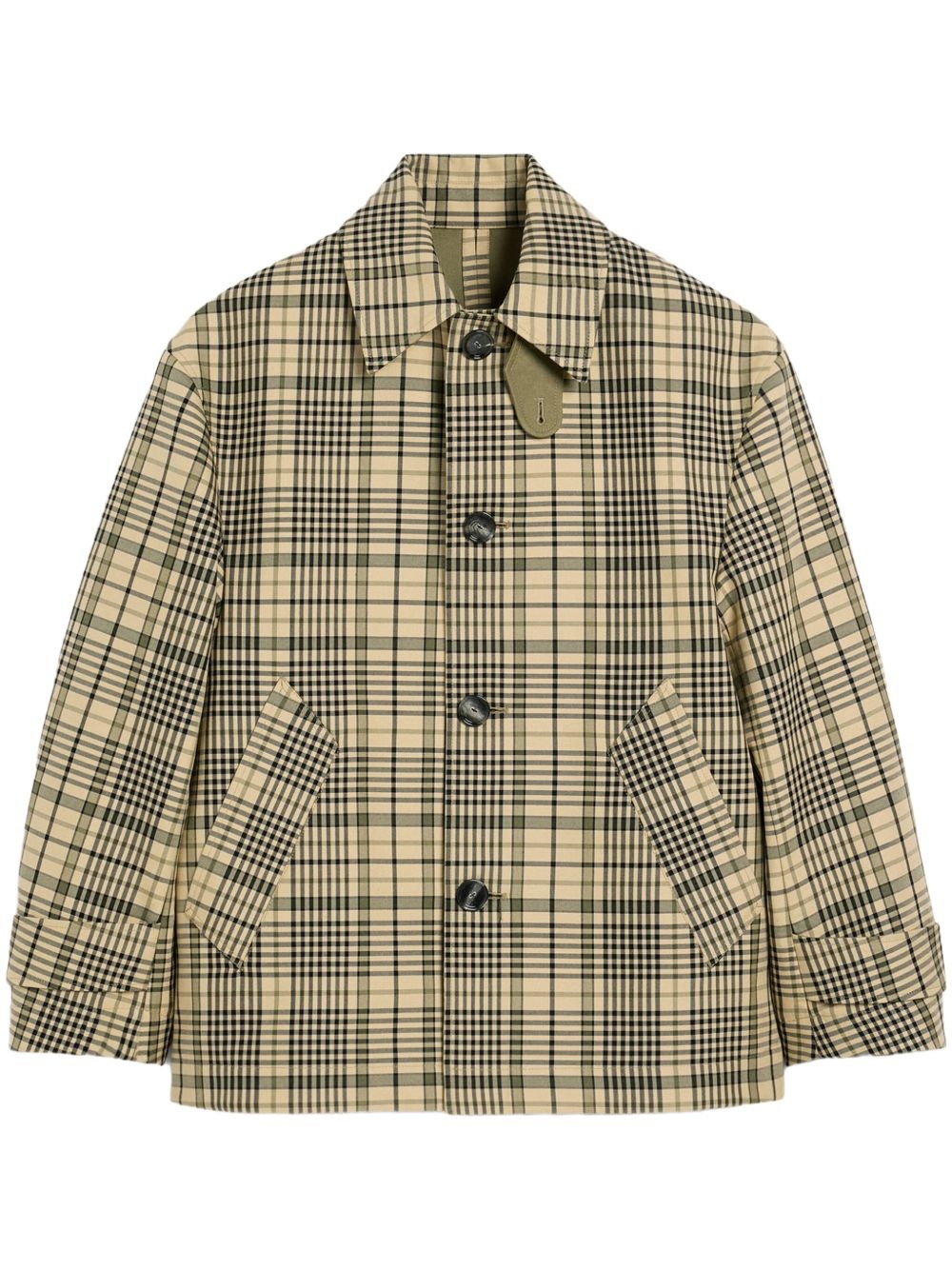 checkered jacket Highlights - Beige - Front button fastening - Two side welt pockets - Classic collar - Belted cuffs Imported Composition Cotton 97%, Polyamide 3%