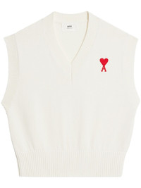 Ami De Coeur V-neck vest Highlights - White - Organic cotton-wool blend - Ribbed detailing - Embroidered logo at the chest - V-neck - Sleeveless - Straight hem - When buying this unisex item, keep in mind that it is graded in standard men's sizing. Made in Italy Composition Organic Cotton 85%, Wool 15% SIZE & FIT Measurement CHEST 42.51 in(108 cm) WAIST 37.79 in(96 cm) Washing instructions Read Manufacturer Guidelines