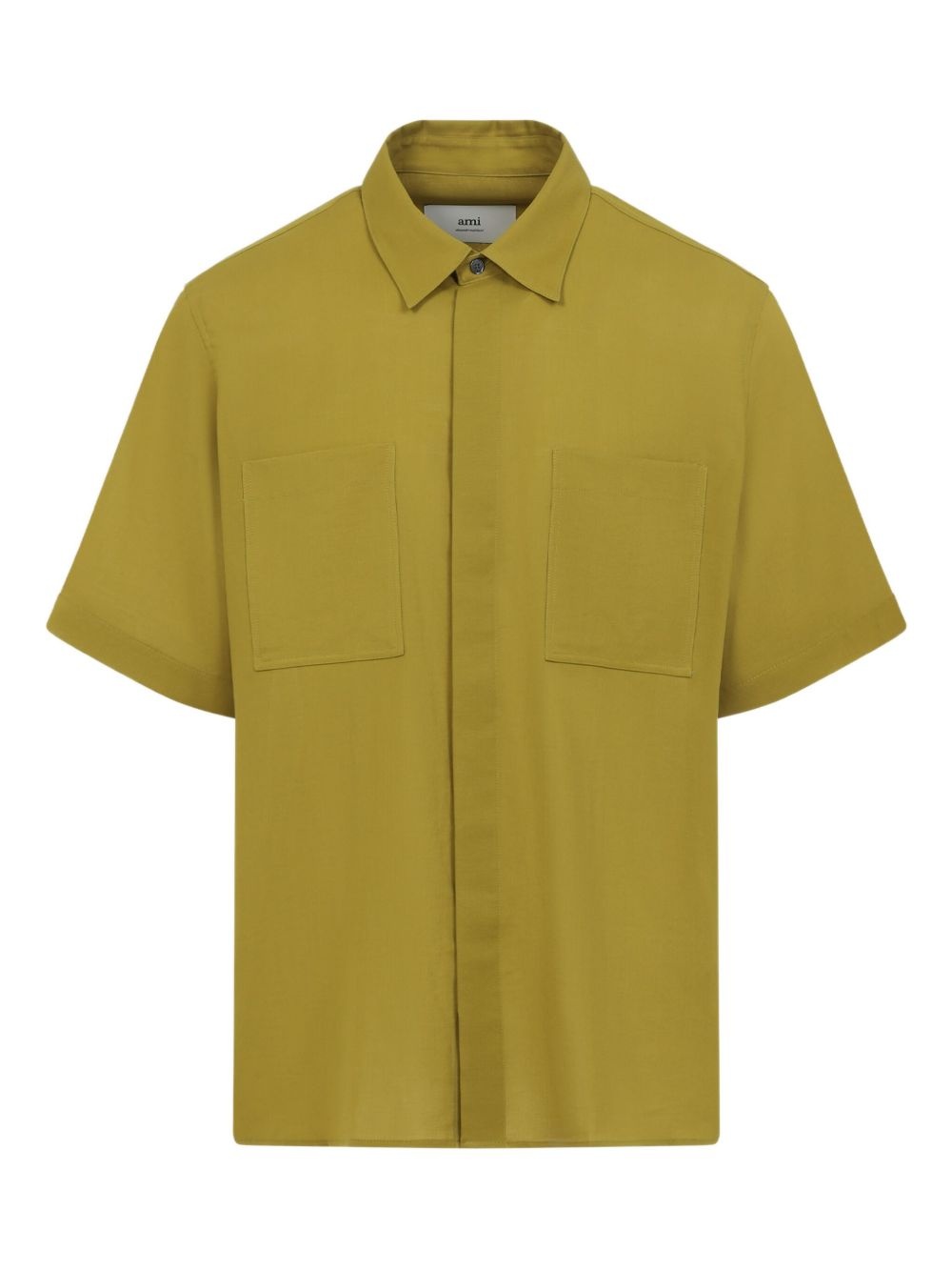 cotton shirt Highlights - Fern green - Concealed front button fastening - Two chest patch pockets - Short sleeves - Straight hem Imported Composition Cotton 100%