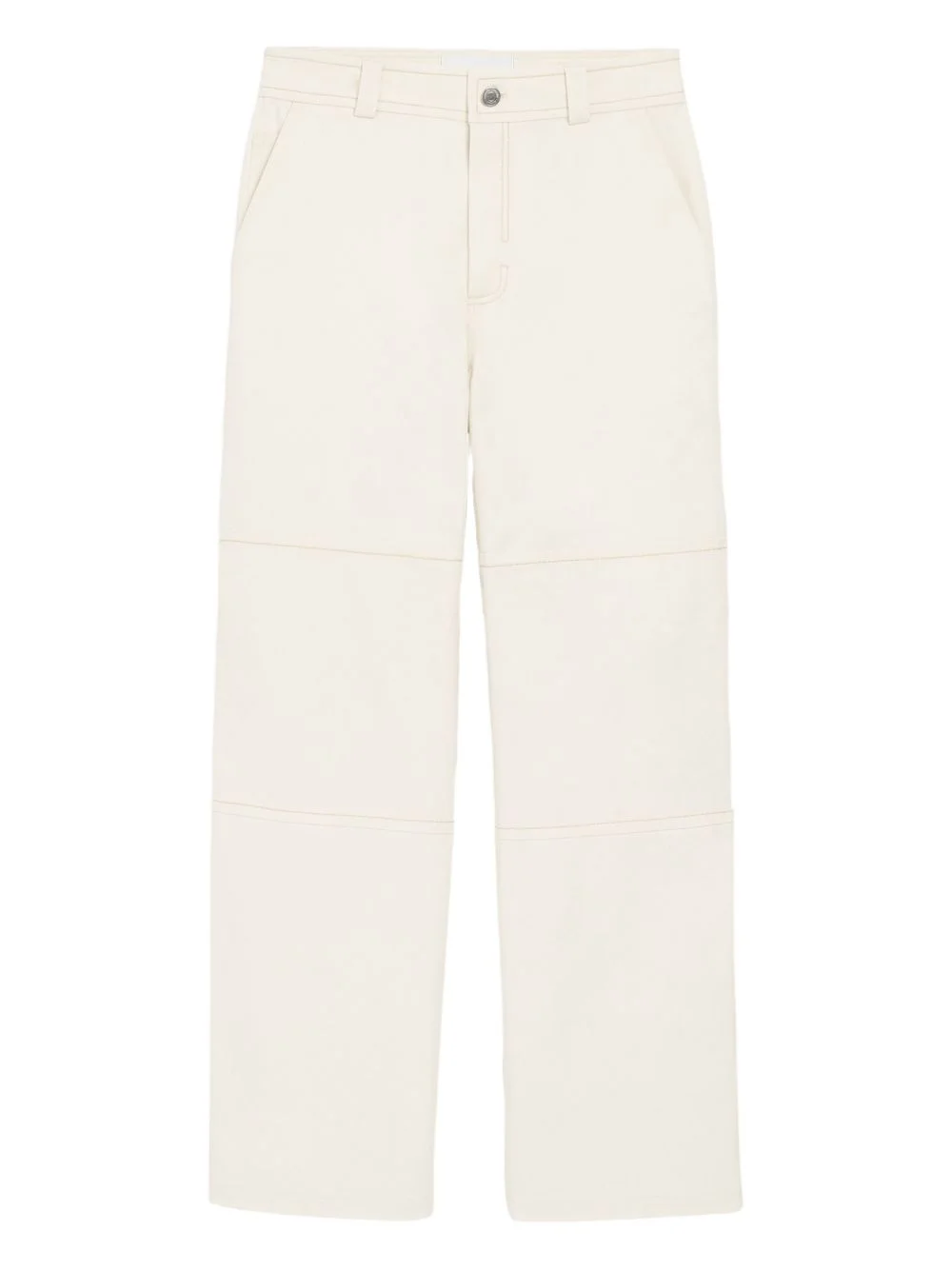 cotton trousers Highlights - White cream - Zip fly - Contrasted topstitching Imported Composition Lining: Polyester 65%, Cotton 35% Outer: Cotton 100% Washing instructions Read Manufacturer Guidelines