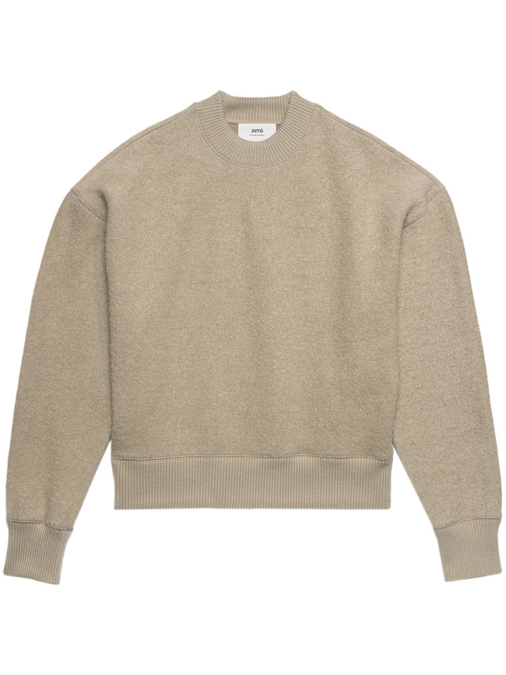 crew-neck fleece sweatshirt This sweatshirt embodies AMI Paris' nonchalant Parisian aesthetic. Spun from a soft wool blend with a fleece texture, the classic crew neck silhouette is cut for a slightly oversized fit for a relaxed appeal. Highlights - Taupe brown - Wool blend - Fleece texture - Crew neck - Drop shoulder - Long sleeves - Ribbed trim - Straight hem - When buying this unisex item, keep in mind that it is graded in standard men's sizing. Imported Composition Wool 93%, Polyamide 7% Washing instructions Hand Wash