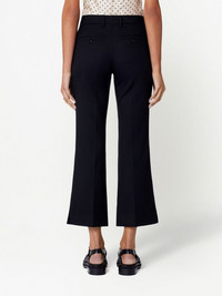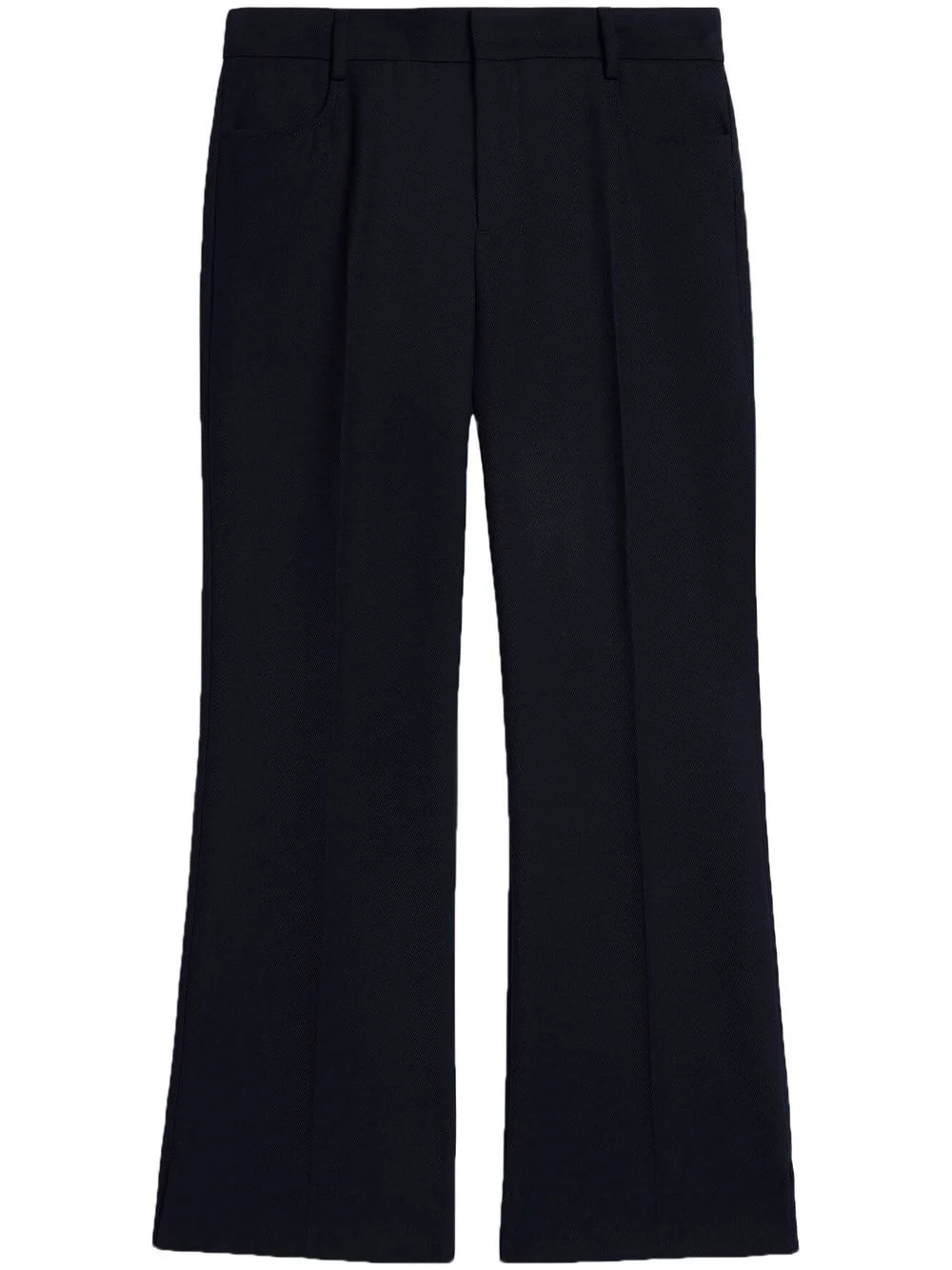 cropped flared trousers Crafted from a soft virgin wool blend, these trousers from AMI Paris are presented in a refined black hue. With a tailored construction, this cropped pair opens up to a flared leg, capturing the label’s elegant yet contemporary aesthetic. Highlights - Black - Virgin wool blend - Mid-rise - Belt loops - Hook and zip fly fastening - Flared - Two front pouch pockets - Two rear button-fastening pockets - Logo-debossed buttons - Unlined Imported Composition Outer: Polyester 55%, Virgin Wool 45% Lining: Polyester 100%