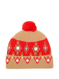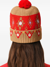 cross-stitch pompom wool beanie Highlights - Red - Wool - Cross-stitch pattern - Pompom detail - Turn-up wide brim Made in Italy Composition Wool 100%