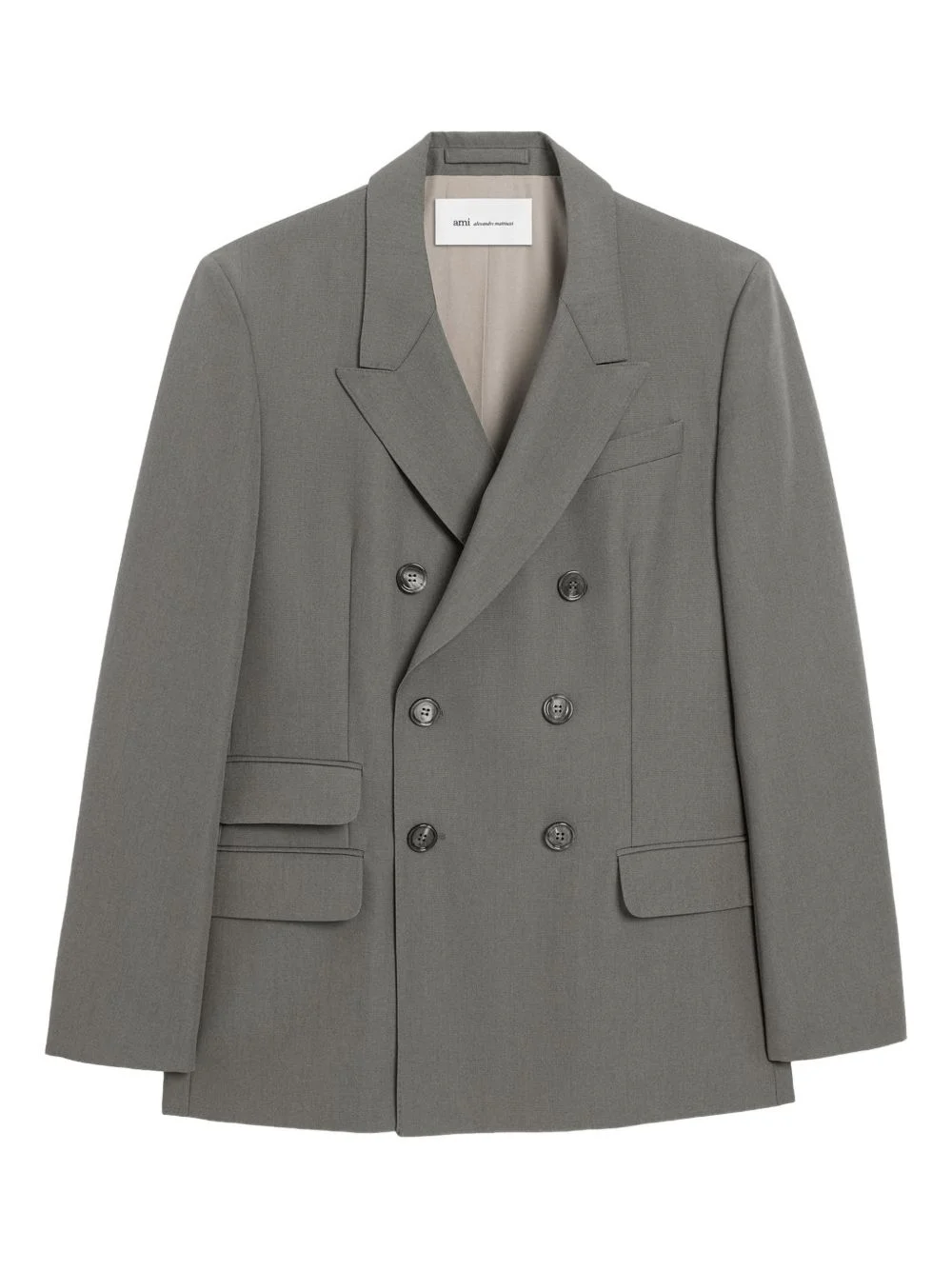 double-breasted blazer Highlights - Grey - Classic lapels - Double pockets - Chest piped pocket - Side back slits Imported Composition Virgin Wool 100% Washing instructions Read Manufacturer Guidelines