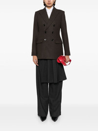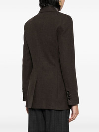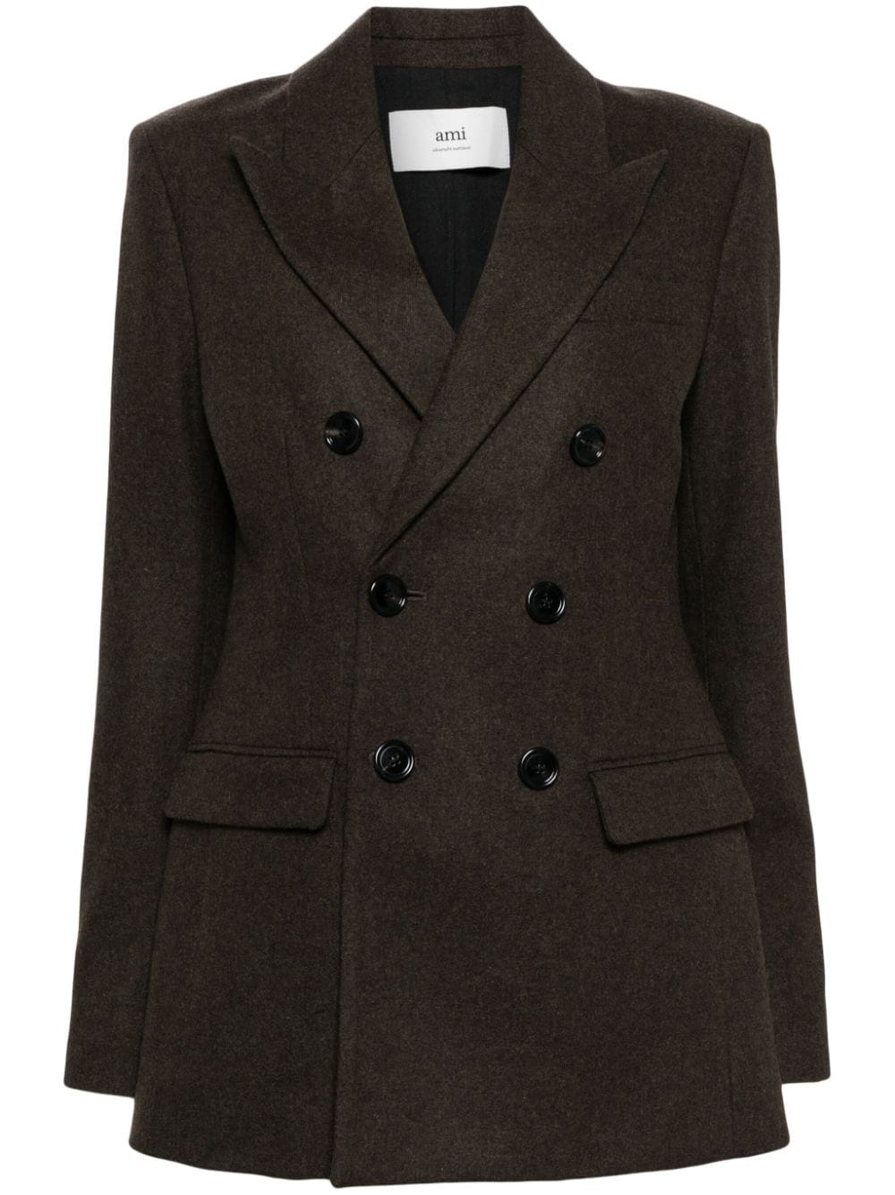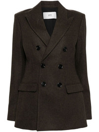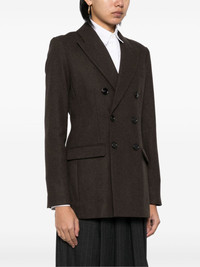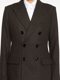 double-breasted blazer Highlights - Coffee brown - Virgin wool - Flannel - Double-breasted button fastening - Wide peak lapels - Shoulder pads - Long sleeves - Buttoned cuffs - Chest welt pocket - Two front flap pockets - American rear vent - Contrast lining - Internal jetted pockets - Regular fit Imported Composition Lining: Polyester 50%, Cotton 50% Outer: Virgin Wool 100% SIZE & FIT Model measurements Height 5 ft 10 in(1.77 m) Bust/Chest 31.49 in(80 cm) Hips 35.43 in(90 cm) Waist 25.19 in(64 cm) FittingInformation Designed for a slim fit that sits just away from the body offering a close yet comfortable fit The internal shoulder pads offer a structured shape Made from a midweight non-stretch fabric