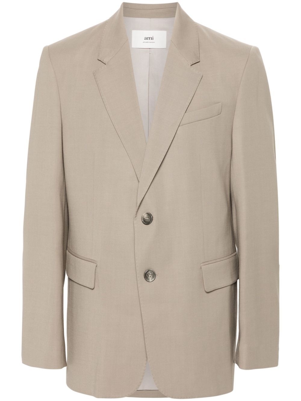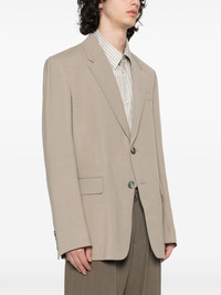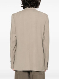 double-breasted blazer Highlights - Almond beige - Twill weave - Decorative tonal stitching - Notched lapels - Shoulder pads - Chest welt pocket - Long sleeves with buttoned cuffs - Dart detailing - Two side flap pockets - Central rear vent - Multiple internal slip pockets - Full lining - Straight hem - Front button fastening Imported Composition Outer: Viscose 55%, Virgin Wool 45% Lining: Polyester 50%, Cotton 50%