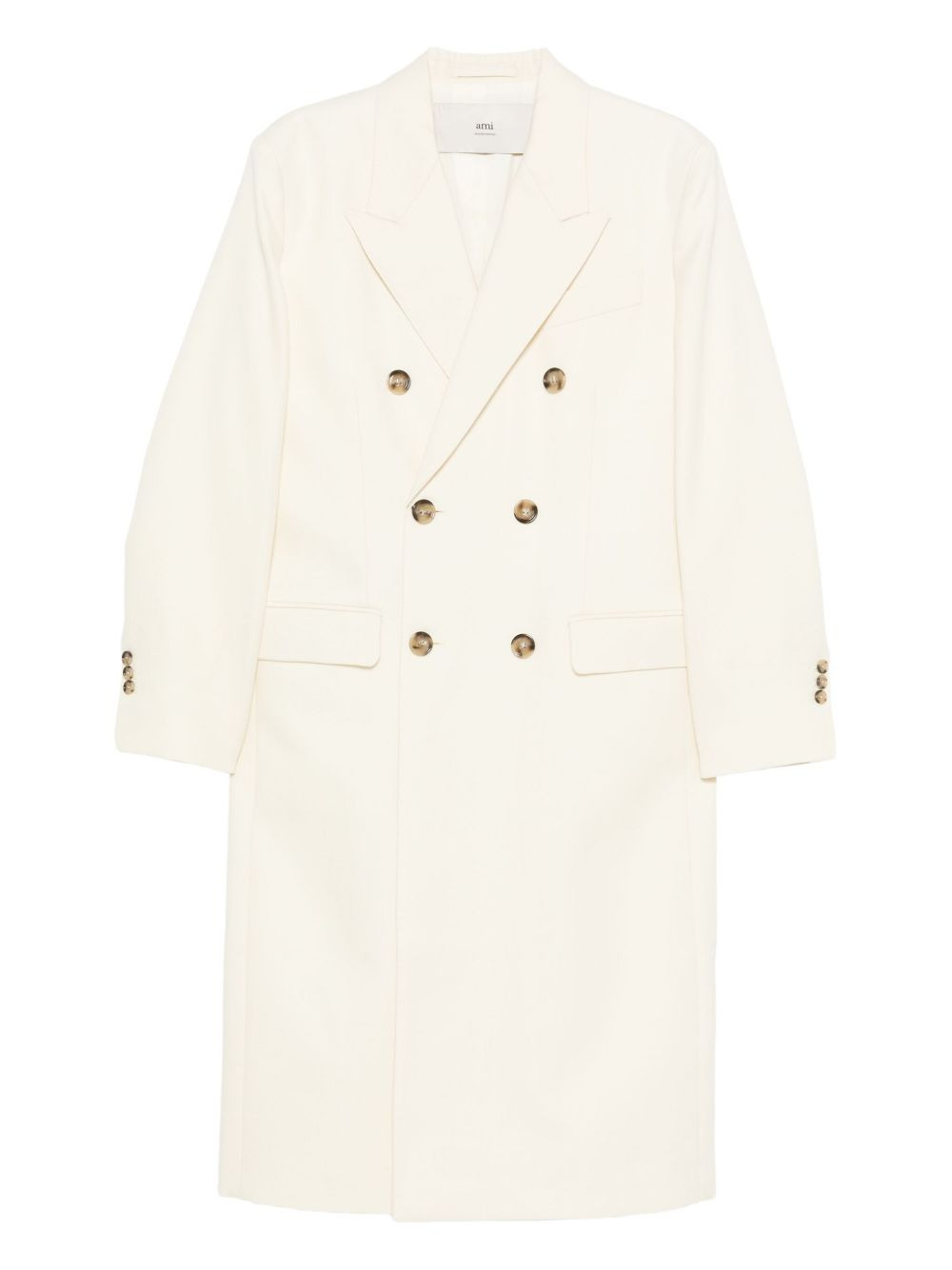 double-breasted coat Highlights - Ivory white - Double-breasted button fastening - Flap pockets Imported Composition Fabric 100% Washing instructions Read Manufacturer Guidelines