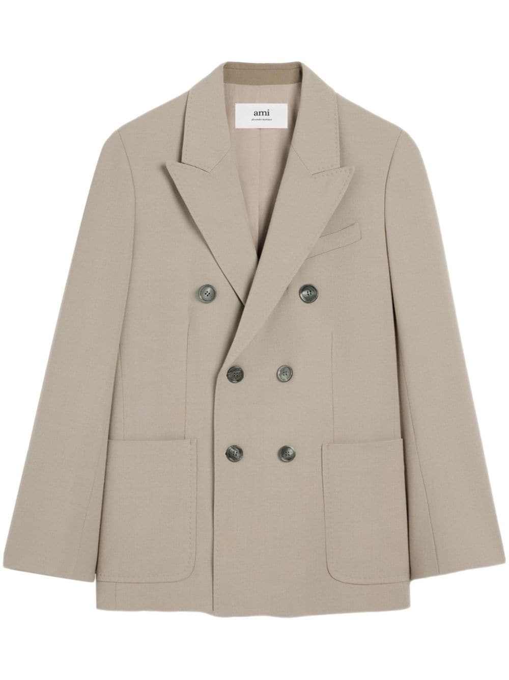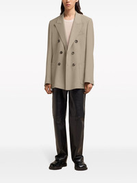 double-breasted peak-lapel blazer Highlights - Taupe - Shoulder pads - Wide peak lapels - Long sleeves - Chest welt pocket - Double-breasted button fastening - Two side patch pockets - Straight hem Imported Composition Viscose 55%, Virgin Wool 45% SIZE & FIT Measurement LENGTH 31.1 in(79 cm) WAIST 39.37 in(100 cm) CHEST 40.15 in(102 cm) SLEEVE LENGTH 26.77 in(68 cm) Washing instructions Read Manufacturer Guidelines