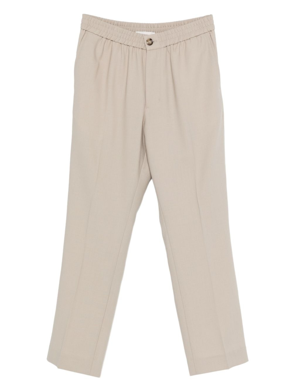 elastic-waist pants Highlights - Beige - Elasticated waistband - Button fly - Straight leg - Virgin wool Imported Composition Virgin Wool 100% SIZE & FIT Model measurements Height 6 ft 0 in(1.84 m) Bust/Chest 35.82 in(91 cm) Hips 37 in(94 cm) Waist 28.34 in(72 cm) Washing instructions Read Manufacturer Guidelines