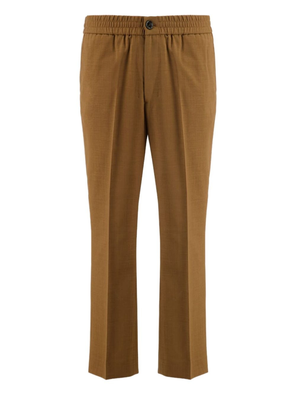 elasticated-waist wool trousers Highlights - Brown - Elasticated waistband - Button fly - Side pockets - Straight leg Imported Composition Wool 100% Washing instructions Read Manufacturer Guidelines
