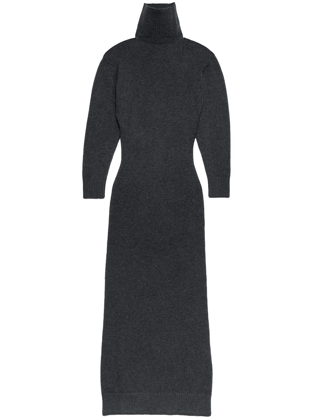 elbow-patch knitted maxi dress Inspired by the effortless elegance of Parisian style, it is reflected in the knitted construction of this maxi dress from AMI Paris. In a charcoal-grey hue, the wool-cashmere blend construction falls to a floor length. Highlights - Charcoal grey - Wool-cashmere blend - Knitted construction - Ribbed knit - Funnel neck - Long sleeves - Elbow patches - Floor-length Made in Italy Composition Wool 90%, Cashmere 10%