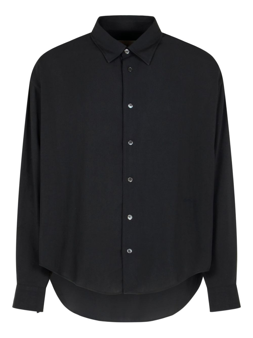 embroidered-logo shirt Highlights - Black - Embroidered logo - Button fastening - Long sleeves - Curved hem - Polo collar Imported Composition Mother of Pearl 100%, Viscose 100% Washing instructions Read Manufacturer Guidelines
