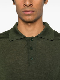 fine-knit polo shirt Highlights - Moss green - Short front button fastening - Long sleeves - Ribbed cuffs and hem Made in Italy Composition Merino 75%, Silk 25% SIZE & FIT Model measurements Height 6 ft 2 in(1.89 m) Bust/Chest 35.03 in(89 cm) Hips 38.18 in(97 cm) Waist 29.92 in(76 cm) FittingInformation Designed for a slim fit, this polo shirt offers a comfortable fit that sits just away from the body Made with a lightweight knit, this piece offers some stretch