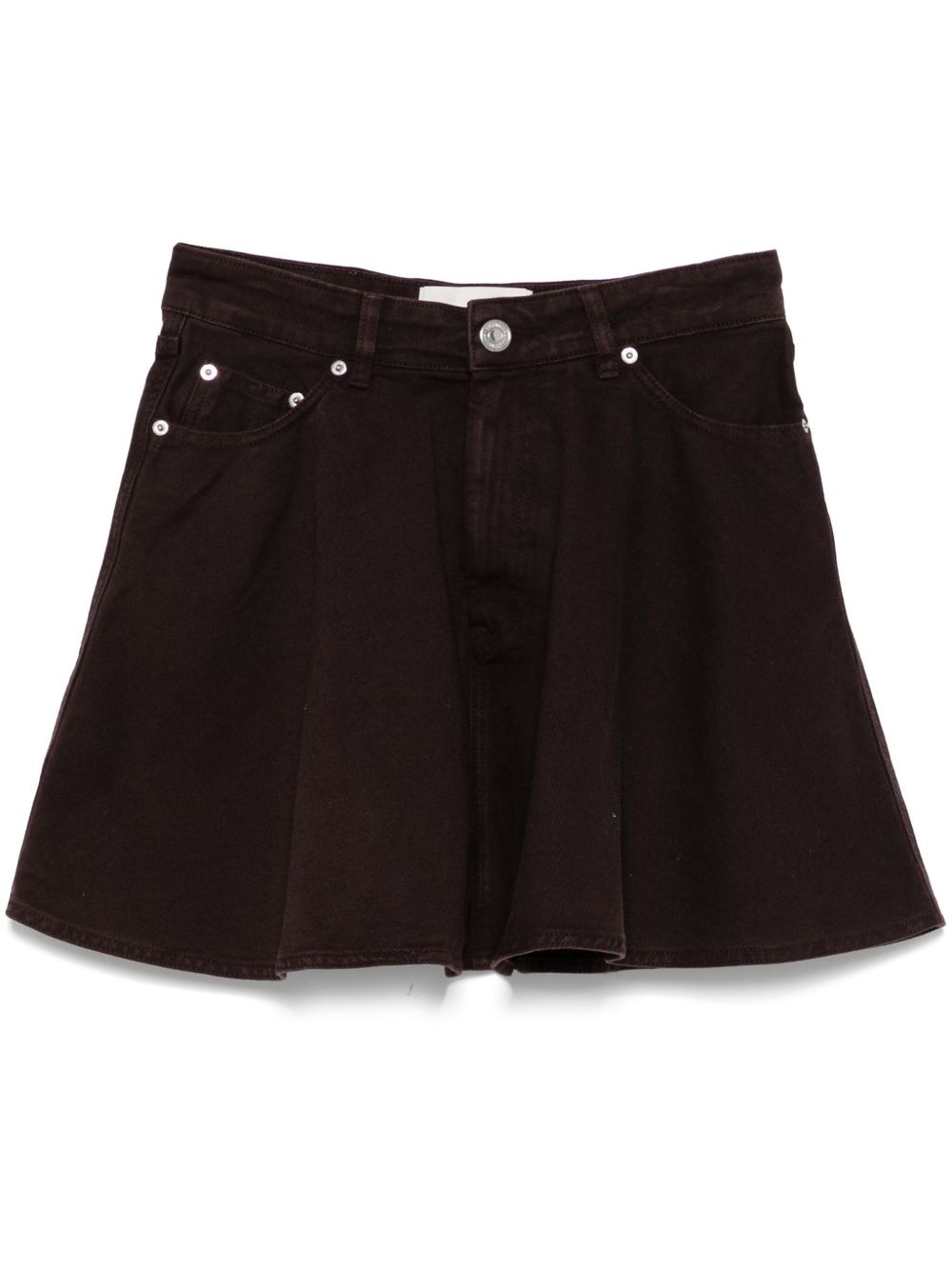 flared mini skirt Highlights - Coffee brown - Concealed fly and button fastening - Belt loops - Classic five pockets - Logo patch to the rear Imported Composition Cotton 100%