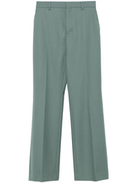 flared trousers Highlights - Parakeet green - Virgin wool - Twill weave - Flared leg - Concealed front button, hook and zip fastening - Belt loops - Two side slash pockets - Pressed crease - Two rear button-fastening jetted pockets Imported Composition Outer: Virgin Wool 100% Lining: Polyester 100% SIZE & FIT FittingInformation Designed with a flared hem, these trousers allow for a close fit at the waist with a slim fit over the leg and widening towards the hem Made from a midweight non-stretch fabric