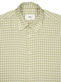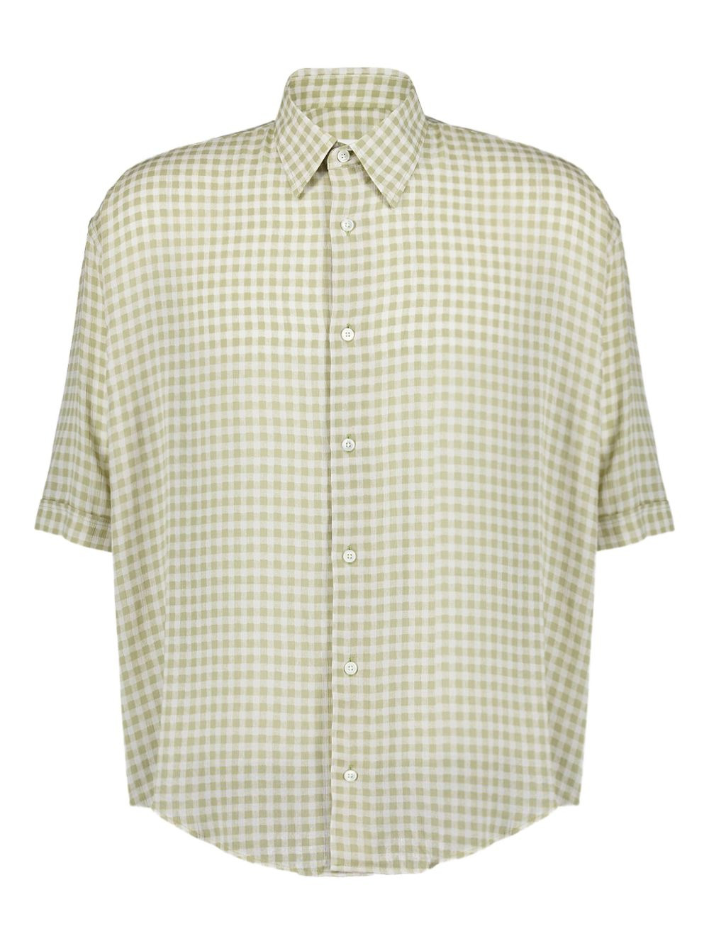 gingham-print shirt Highlights - Light olive green/white - Gingham check print - Spread collar - Drop shoulder - Short sleeves - Curved hem - Front button fastening Made in France Composition Viscose 100%