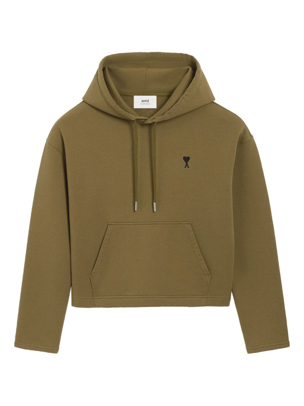 GREEN COTTON CONTRASTED AMI DE COEUR HOODIE