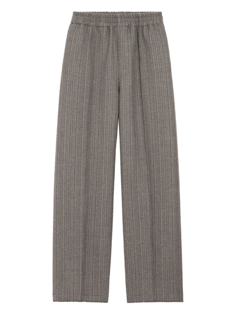 GREY WOOL HERRINGBONE ELASTICATED TROUSERS