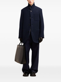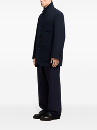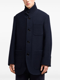 high collar short coat Highlights - Navy blue - Virgin wool - High neck - Button fastening - Three front patch pockets Imported Composition Virgin Wool 100% Washing instructions Read Manufacturer Guidelines
