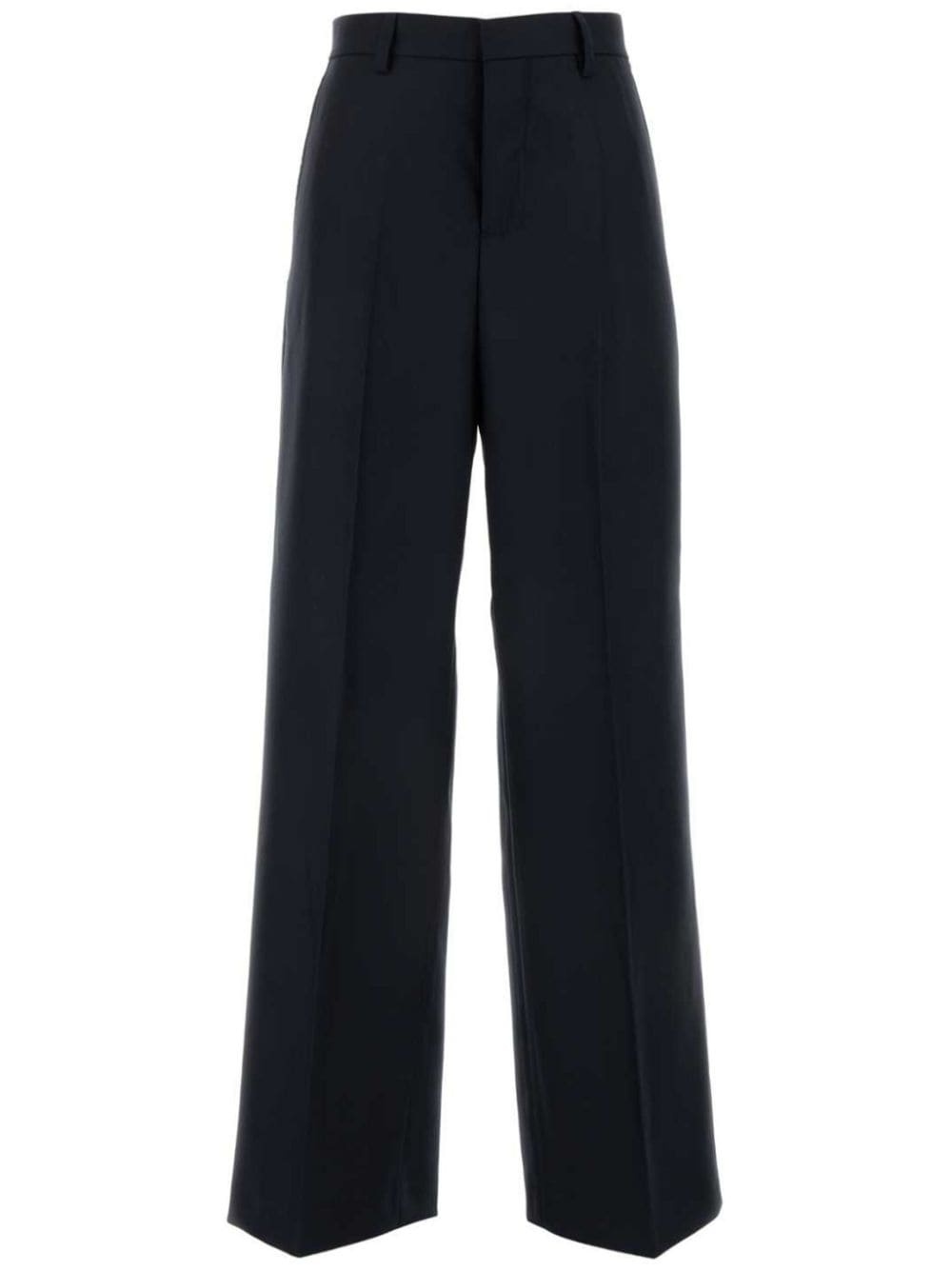 high-waisted wool trousers Highlights - Navy blue - Virgin wool - Concealed front button and hook fastening - Belt loops - Two diagonal pockets to the sides - Pressed crease - Two rear welt pockets - High-waisted Imported Composition Virgin Wool 100%