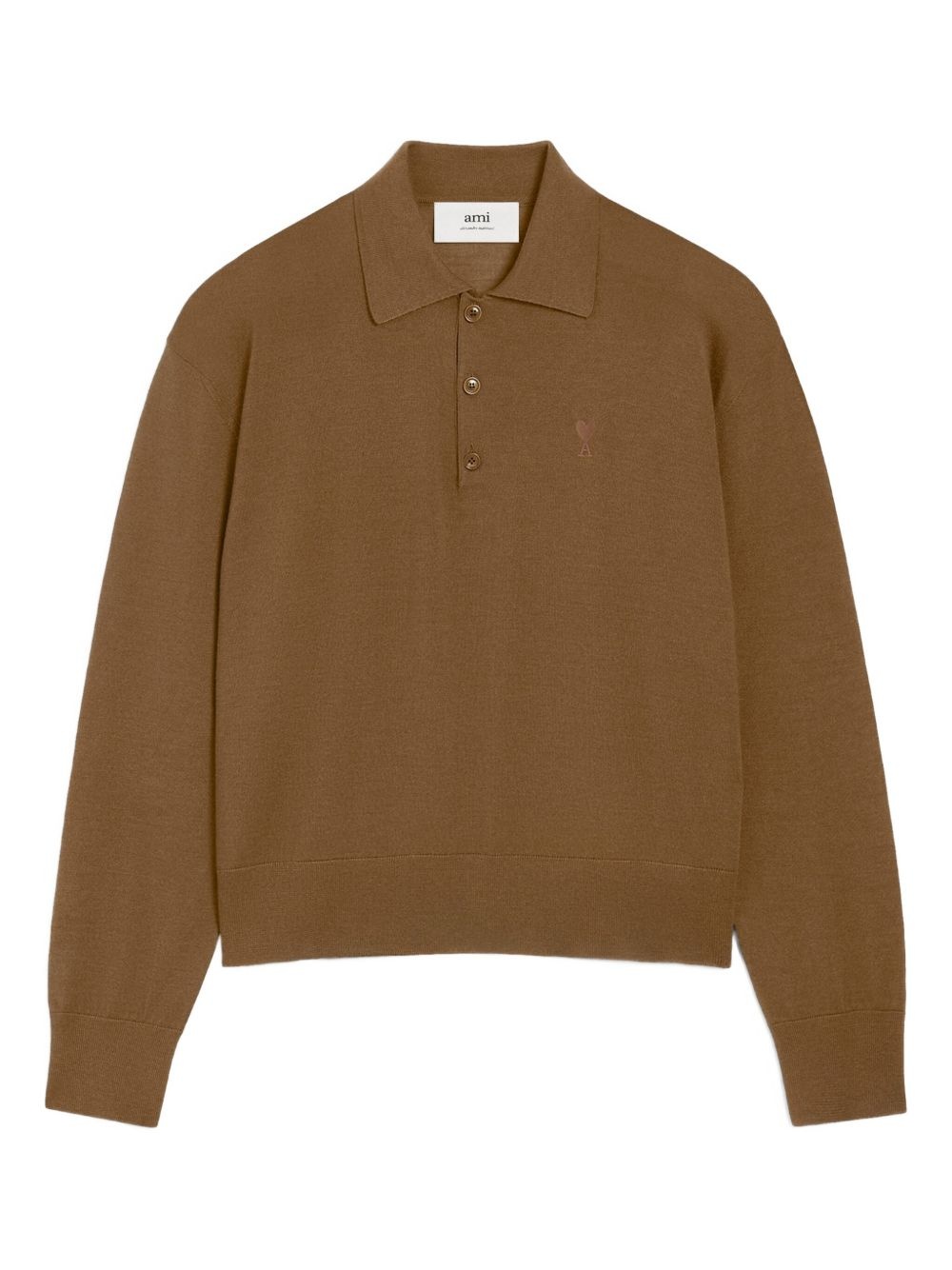 Ami de Coeur polo shirt Highlights - Brown - Polo collar - Three-button fastening - Embroidered logo - Long sleeves Made in Italy Composition Wool 75%, Silk 25% Washing instructions Hand Wash