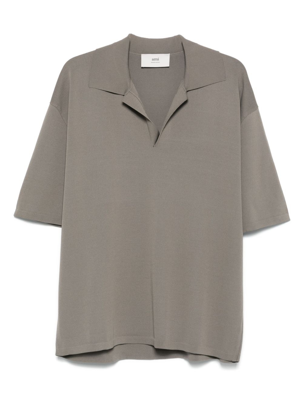 knitted T-shirt Highlights - Taupe grey - Split neck - Short sleeves - Straight hem Imported Composition Viscose 75%, Polyamide 25% SIZE & FIT Model measurements Height 6 ft 0 in(1.84 m) Bust/Chest 37.79 in(96 cm) Hips 37 in(94 cm) Waist 31.49 in(80 cm) FittingInformation Designed for a regular fit allowing for a comfortably loose fit throughout the body Made from a midweight non-stretch fabric, this piece offers minimal elasticity when worn