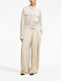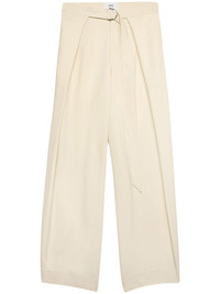 layered wide-leg trousers Highlights - Almond beige - Layered design - Belted waist - Two side inset pockets - Wide leg - Concealed front fastening - Long length Imported Composition Viscose 55%, Wool 45%