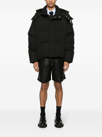 logo-applique puffer jacket AMI Paris keeps things simple and practical with this black puffer jacket. It’s crafted in water-resistant shell that’s quilted to evenly distribute the lightweight and insulating down fill and minimally branded with a logo applique at the nape of the funnel neck. A drawstring hem, detachable hood and ribbed cuffs reinforce its functionality. Highlights - Black - Down-feather filling - Padded design - Quilted - Water-resistant - Applique logo - Funnel neck - Front press-stud and zip fastening - Detachable drawstring hood - Drop shoulder - Long sleeves - Ribbed cuffs - Two side welt pockets - Internal slip pocket - Drawstring hem - When buying this unisex item, keep in mind that it is graded in standard men's sizing. Imported Composition Outer: Polyamide 100%, Acrylic 45%, Wool 45%, Spandex/Elastane 10% Lining: Polyester 100%, Duck Down 90%, Duck Feathers 10% SIZE & FIT Model measurements Height 5 ft 11 in(1.8 m) Bust/Chest 32.67 in(83 cm) Hips 36.22 in(92 cm) Waist 24.4 in(62 cm) Measurement CHEST 57.48 in(146 cm) LENGTH 26.37 in(67 cm) WAIST 55.9 in(142 cm) SLEEVE LENGTH 22.04 in(56 cm) FittingInformation This piece is unisex – if you usually select men's sizing expect a loose fit throughout; if you usually select women's sizes, expect an oversized fit The internal drawstring at the hem allows for fitted preferences Made from a padded non-stretch fabric, giving it no natural elasticity Washing instructions Dry Clean Only