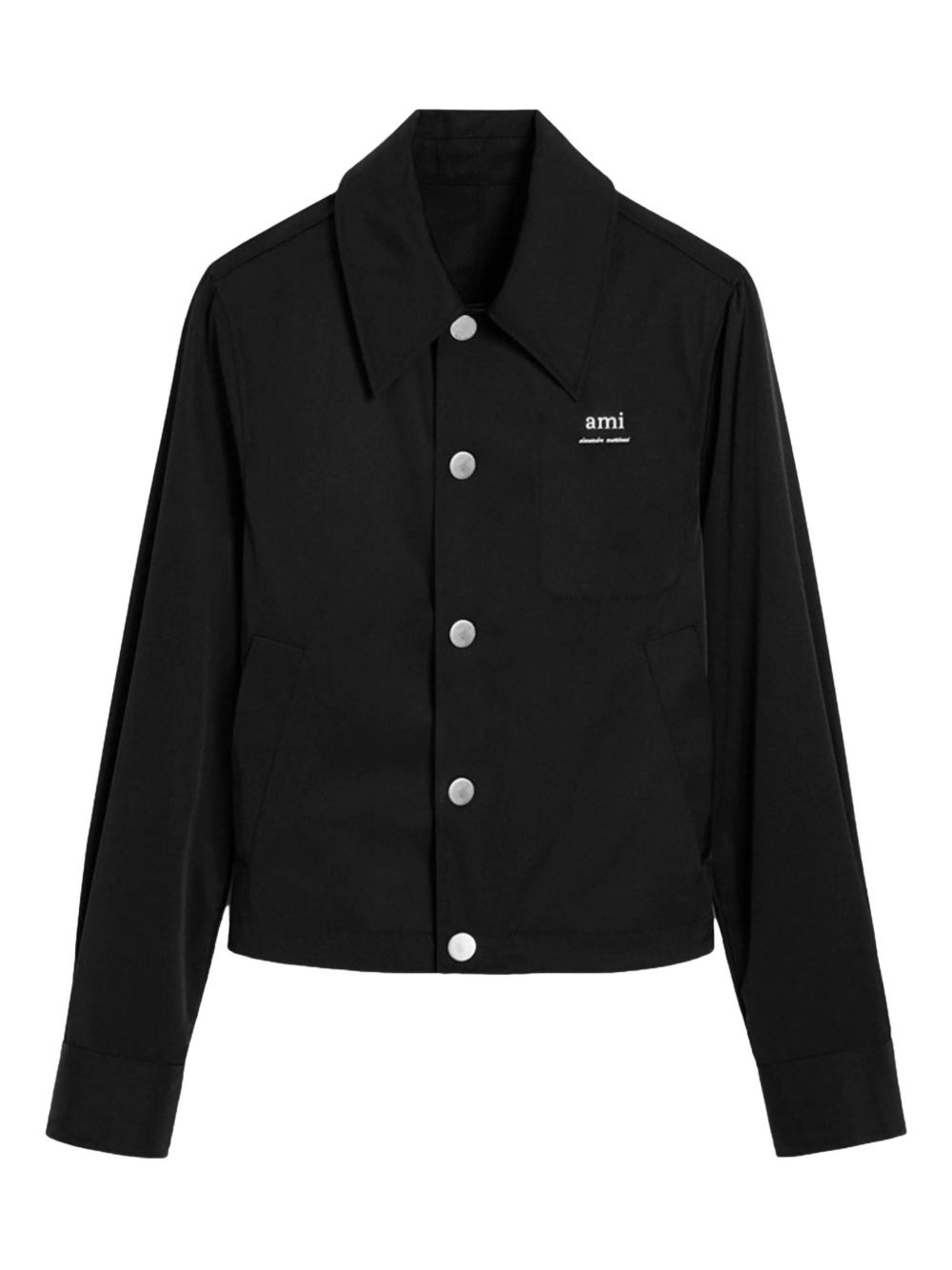 Ami Alexandre Mattiussi button-up jacket Highlights - Black - Cotton blend - Spread collar - Embroidered logo at the chest - Front press-stud fastening - Long sleeves - Press-stud fastening cuffs - Rear elasticated hem - Straight hem - When buying this unisex item, keep in mind that it is graded in standard men's sizing. Imported Composition Polyamide 70%, Cotton 30% Washing instructions Read Manufacturer Guidelines