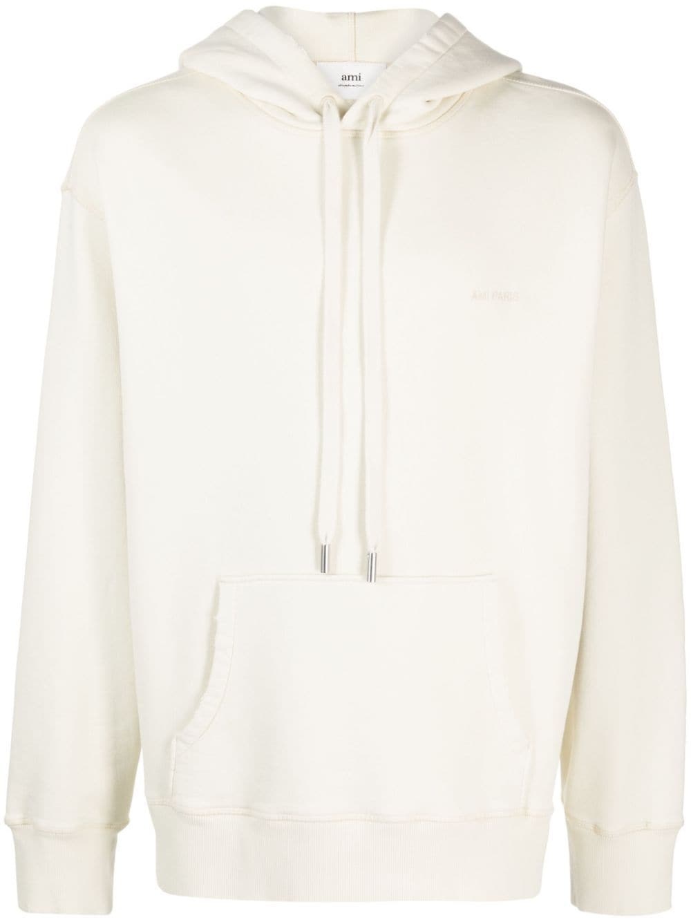 logo-embroidered cotton hoodie In line with the brand's affinity for slouchy sportswear and elevated basics, this ivory-white AMI Paris hoodie is made from cotton to a classic, functional silhouette with a drawstring hood and front pouch pocket. Tonal embroidery at the chest adds barely-there branding. Highlights - Ivory white - Cotton - Embroidered logo at the chest - Drawstring hood - Long sleeves - Front pouch pocket - Ribbed cuffs and hem - When buying this unisex item, keep in mind that it is graded in standard men's sizing. Imported Composition Cotton 100% SIZE & FIT FittingInformation Designed to be unstructured, offering a loose fit throughout Made from a midweight non-stretch fabric, this piece offers minimal elasticity when worn