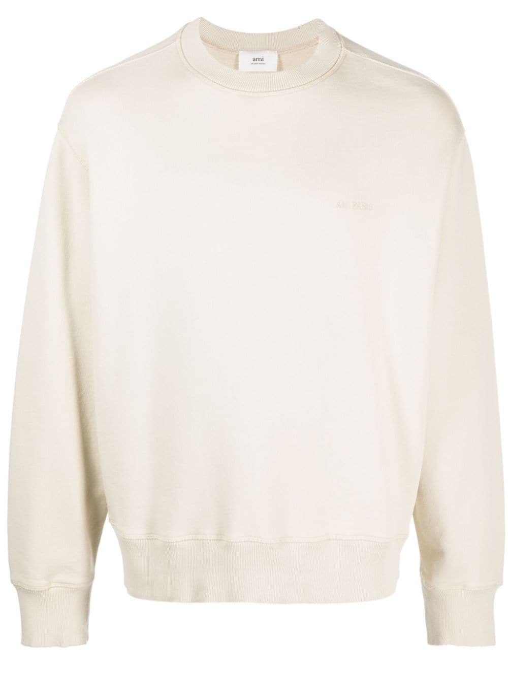 logo-embroidered cotton sweatshirt AMI Paris spotlights its refined take on casual staples with this ecru sweatshirt. It’s spun from cotton to a crew-neck silhouette and embroidered with subtle logo lettering at the chest. Highlights - Ecru - Cotton - Embroidered logo at the chest - Crew neck - Long sleeves - Ribbed cuffs - Ribbed hem Imported Composition Cotton 100% SIZE & FIT FittingInformation This unisex piece is designed for a relaxed fit whether you usually select women's or men's sizes Made from a midweight non-stretch fabric, this piece offers minimal elasticity when worn