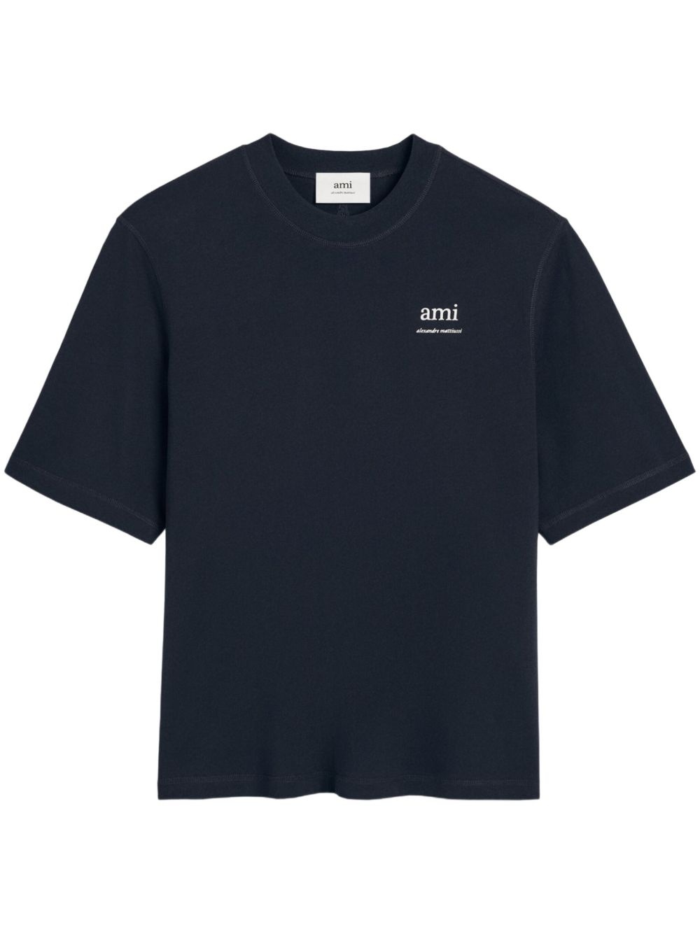 logo-embroidered T-shirt Highlights - Navy blue - Signature ami de coeur monogram motif - Crew neck - Short sleeves - Straight hem Imported Composition Organic Cotton 100% Washing instructions Machine Wash