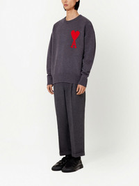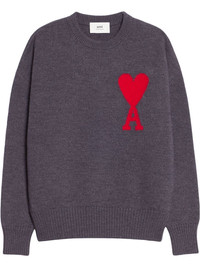 Ami de Coeur sweater AMI Paris' signature Ami de Coeur logo, translating as 'Ami of hearts', is a reinterpretation of the ace of hearts, expressing the brand's playful nature. Spun from soft virgin wool, this grey-toned jumper features the motif at the chest in a vibrant red intarsia-knit pattern. Highlights - Grey - Virgin wool - Signature ami de coeur monogram motif - Intarsia-knit logo - Crew neck - Long sleeves - Straight hem - Ribbed trim - When buying this unisex item, keep in mind that it is graded in standard men's sizing. Imported Composition Virgin Wool 100%