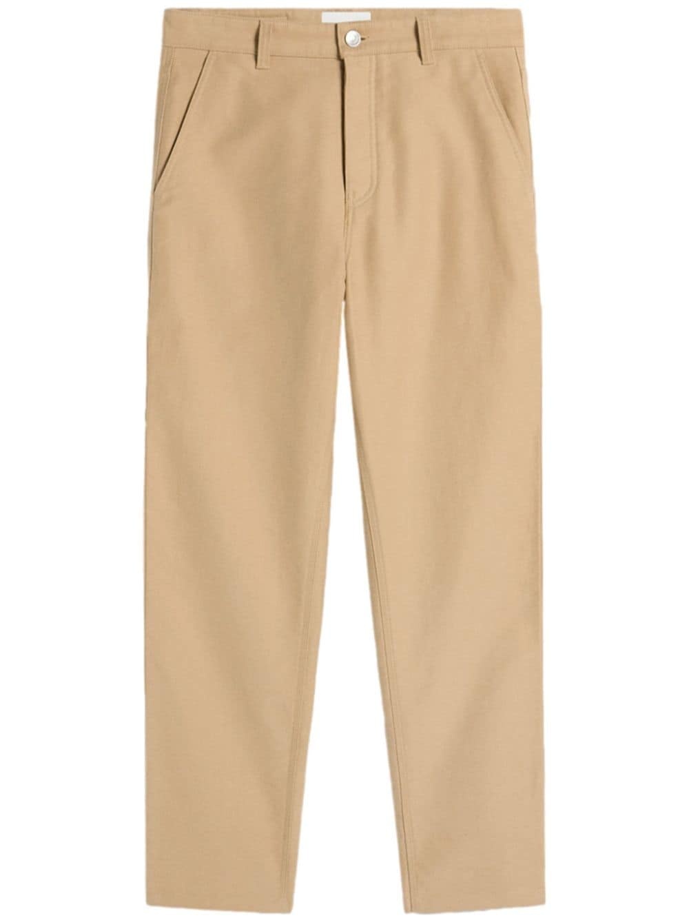 logo-patch straight-leg worker trousers Highlights - Sand beige - Cotton - Logo patch to the rear - Belt loops - Front button fastening - Two diagonal pockets to the sides - Two rear patch pockets - Straight leg Imported Composition Cotton 100%