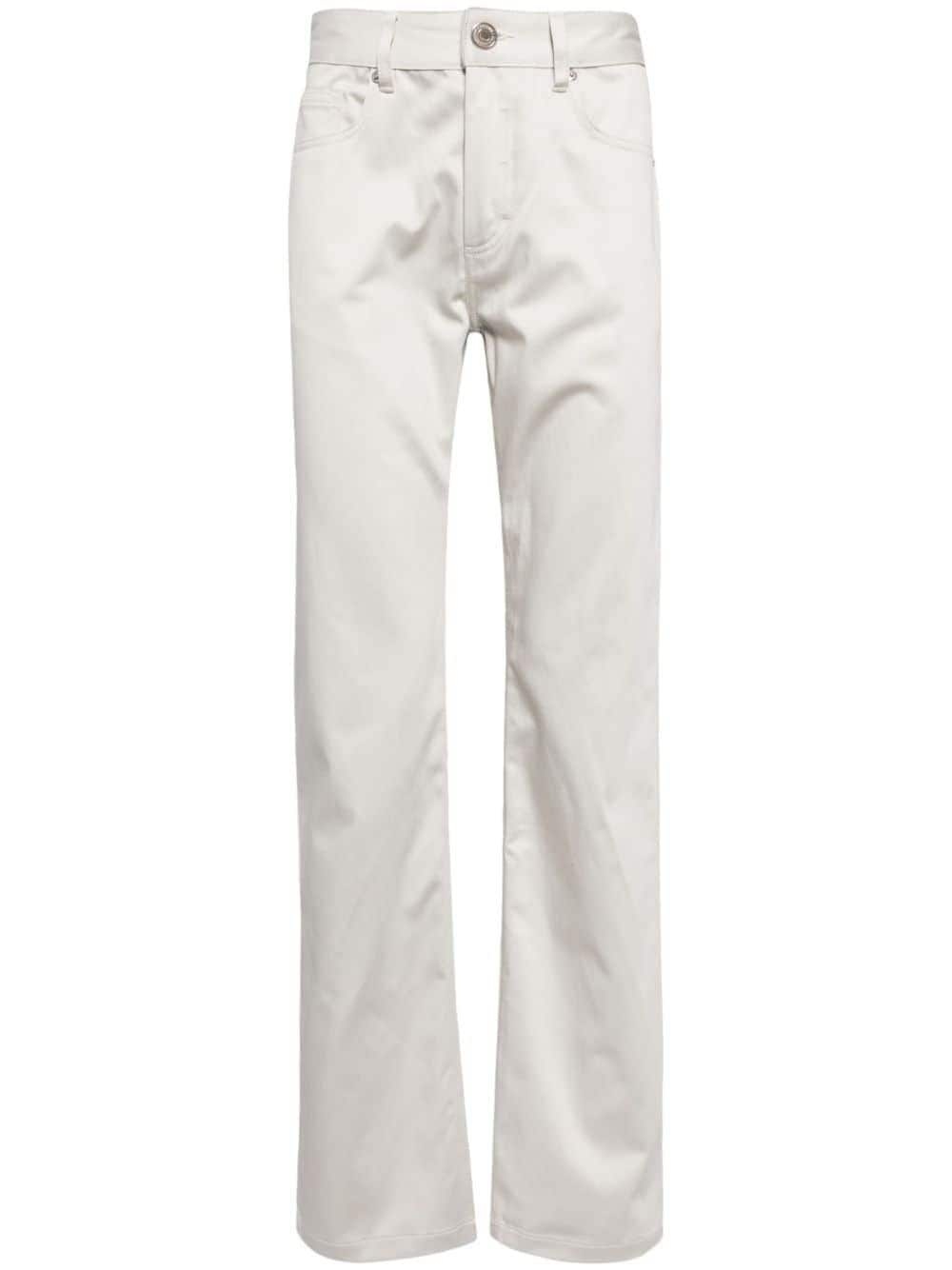 logo-patch straight trousers Highlights - Ivory white - Cotton - Textured finish - Belt loops - Classic five pockets - Logo patch to the rear - Straight leg - Front button and zip fastening Imported Composition Cotton 100% SIZE & FIT Measurement INSIDE LEG 33.07 in(84 cm) FRONT RISE 10.43 in(26.5 cm) HIPS 37 in(94 cm)