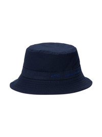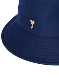 logo-plaque bucket hat Highlights - Navy blue - Cotton blend - Signature ami de coeur monogram motif - Silver-tone logo plaque - Flat crown - Dropped narrow brim Made in Italy Composition Lining: Cotton 100% Outer: Polyamide 96%, Polyurethane 4%