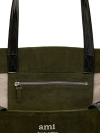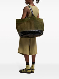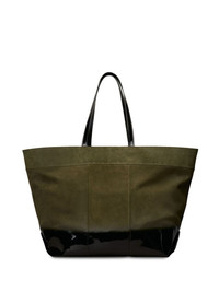 logo-plaque panelled tote bag Highlights - Olive green - Canvas/leather/linen - Panelled design - Silver-tone logo plaque - Two long top handles - Internal zip-fastening pocket Imported Composition Outer: Calf Leather 100%, Canvas 100% Lining: Linen/Flax 100% SIZE & FIT Measurement DEPTH 8.85 in(22.5 cm) HEIGHT 17.71 in(45 cm) WIDTH 30.7 in(78 cm)