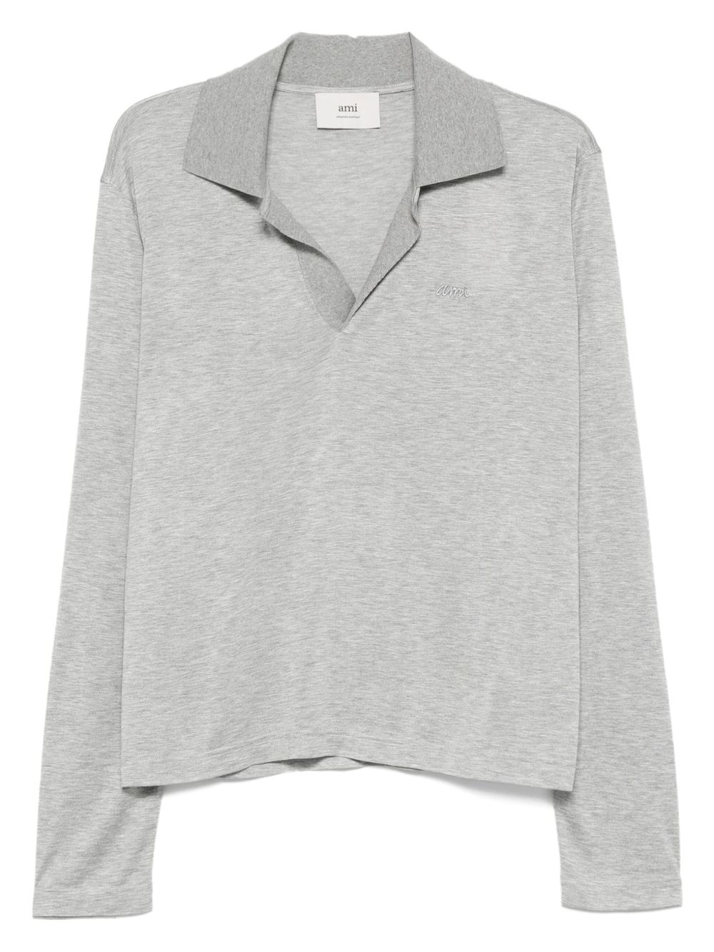 long-sleeve polo shirt Highlights - Grey - Long sleeves - Polo collar - Subtle embroidered logo Imported Composition Viscose 88%, Silk 12% Washing instructions Dry Clean Only