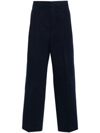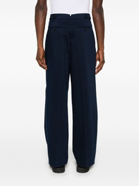 loose-cut tailored trousers Highlights - Navy blue - Cotton - Pleat detailing - Pressed crease - Two side slit pockets - Two rear button-fastening jetted pockets - Straight leg - Front button fly and hook fastening Imported Composition Lining: Polyester 100% Outer: Cotton 100% SIZE & FIT Model measurements Height 6 ft 2 in(1.88 m) Bust/Chest 36.61 in(93 cm) Hips 35.82 in(91 cm) Waist 27.95 in(71 cm) FittingInformation Designed with a wide leg, offering a loose and roomy fit Made from a midweight non-stretch fabric This piece fits true to size – take your usual size