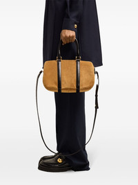 Boston suede tote bag Highlights - Camel brown/black - Calf suede - Gold-tone hardware - Two-tone design - Two top handles - Adjustable detachable shoulder strap - Two-way zip fastening - Main compartment - Debossed internal logo - Internal zip-fastening pocket Imported Composition Outer: Calf Suede 100% Lining: Suede 100% SIZE & FIT Measurement DEPTH 5.51 in(14 cm) HEIGHT 7.08 in(18 cm) WIDTH 11.81 in(30 cm)