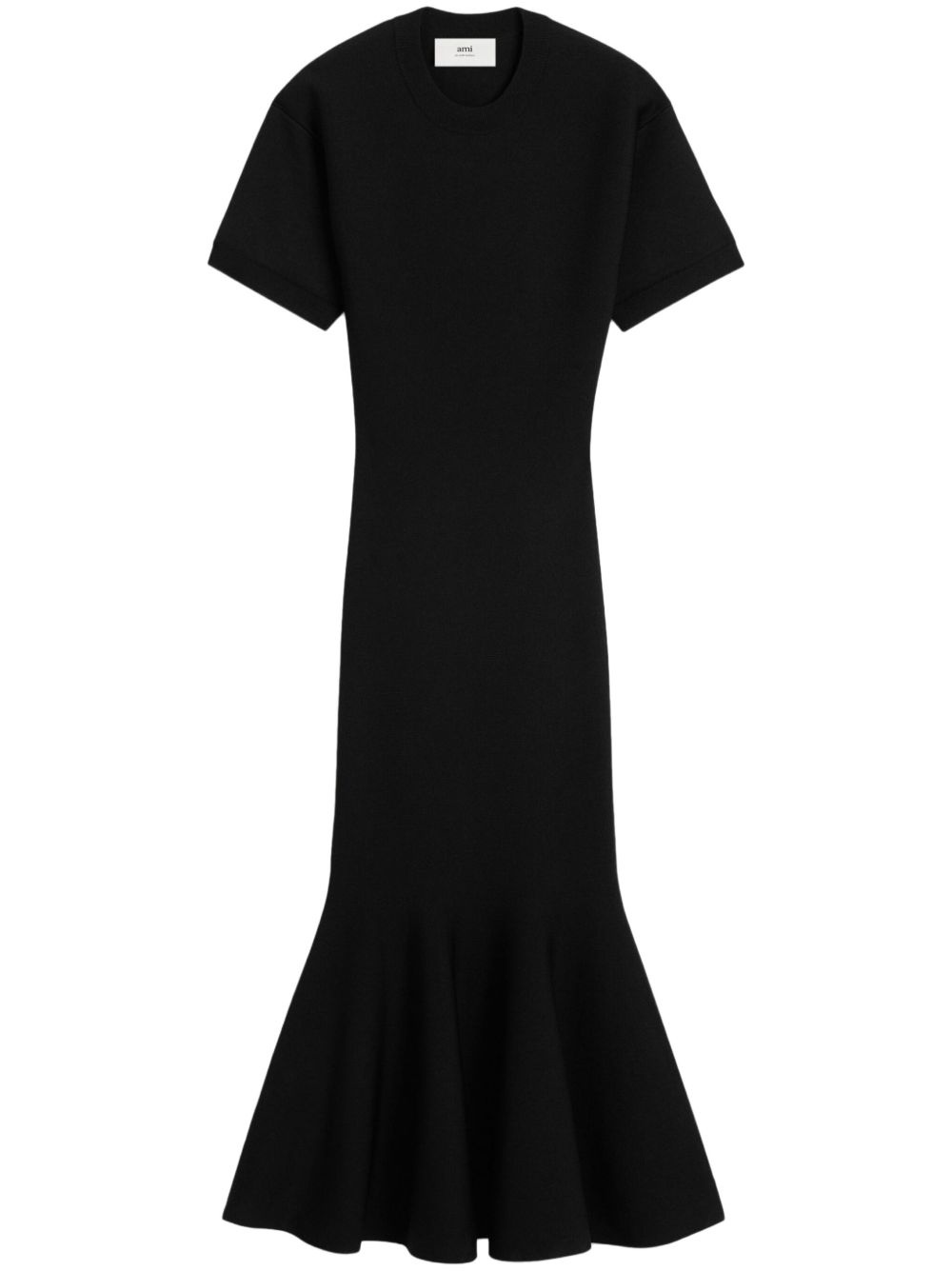 Godet dress Highlights - Black - Crew neck - Drop shoulder - Half-length sleeves Imported Composition Viscose 75%, Polyamide 25%